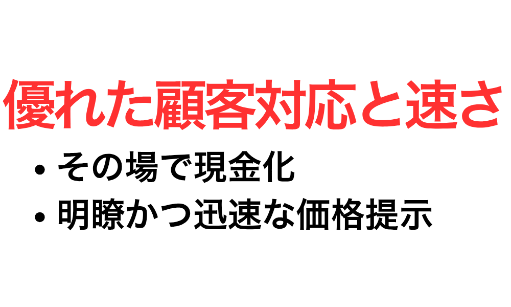 などの利点があります。買取実績の多さと査定金額の高さが評価されています。