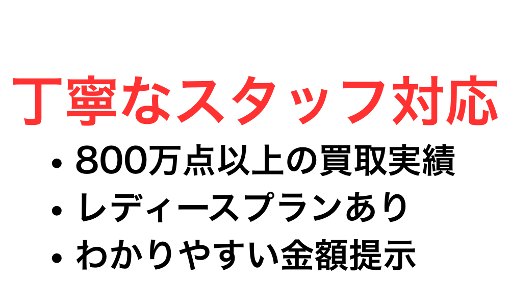 できれば出張買取を希望していましたが、女でひとり暮らしなので、いくら従業員とはいえ見知らぬ男性に入室されるのはちょっと抵抗あるなという思いもありました。女性の査定担当者もいるとのことで、安心して買取依頼をすることができました。やってきた女性査定員のかたは、女性らしいきめ細かい、それでいて迅速な査定で、見ていてほれぼれしました。予想以上の高い買取価格がついてのも嬉しかったです。