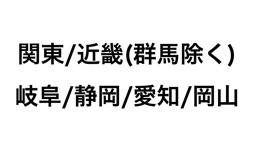 *【関東】東京・神奈川・千葉・埼玉・栃木・茨城【東海】愛知・三重・静岡東部(静岡県東部+静岡市)・岐阜(岐阜市・瑞穂市・美濃加茂市・可児市・多治見市)【関西】大阪・京都・兵庫・滋賀・奈良・和歌山・岡山