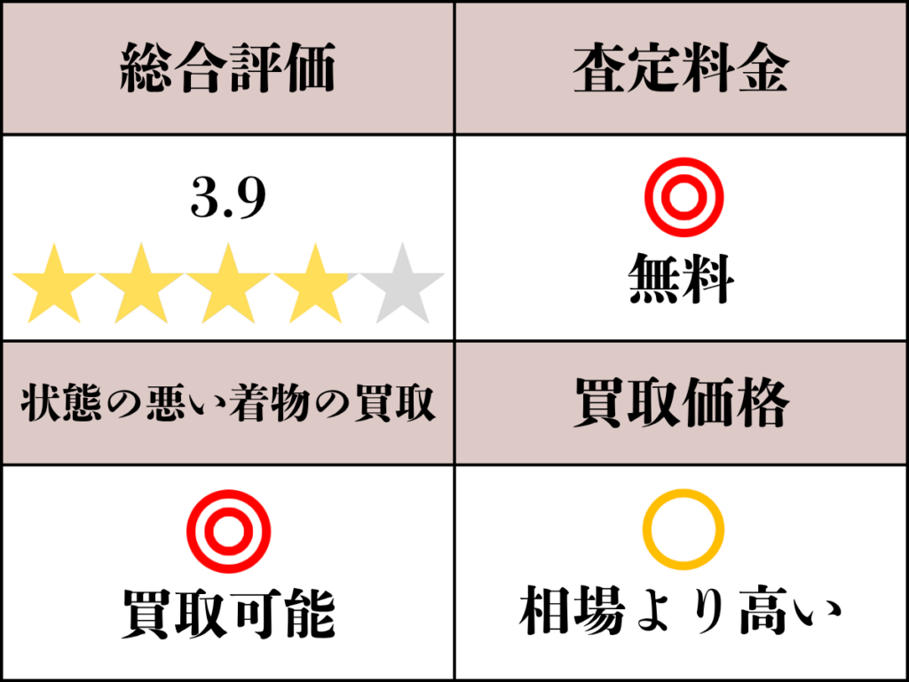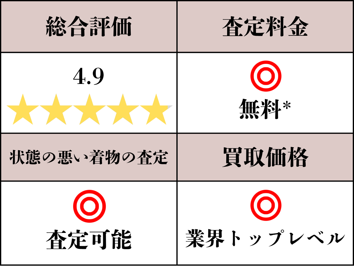着物に精通した査定士による価値に見合った買取価格提示が評価されています。